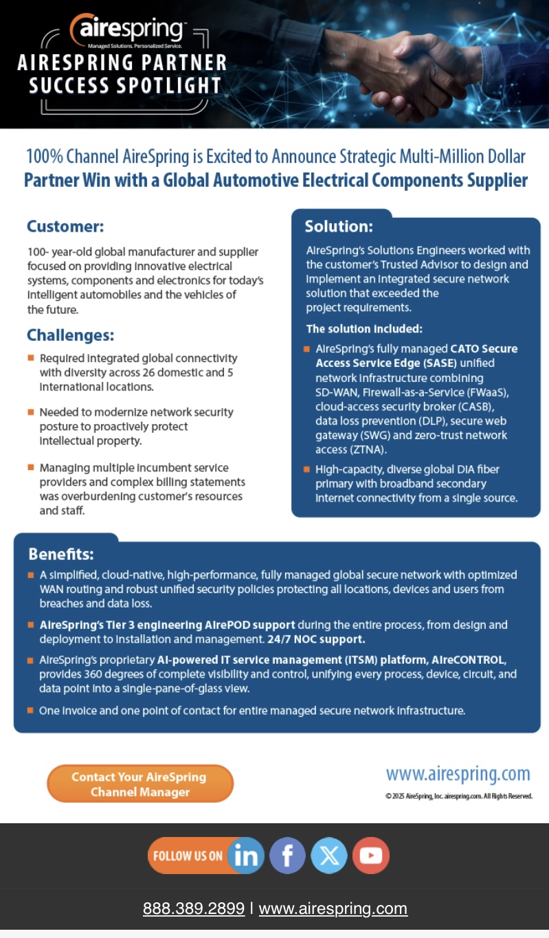 AireSpring Partner Success Spotlight: Global Automotive Electrical Components Supplier Source iAgentNetwork on 04/10/25