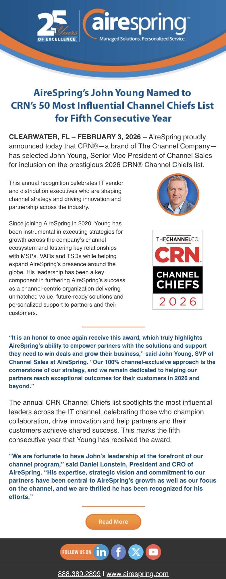 AireSpring’s John Young Named Top 50 Channel Chief by CRN