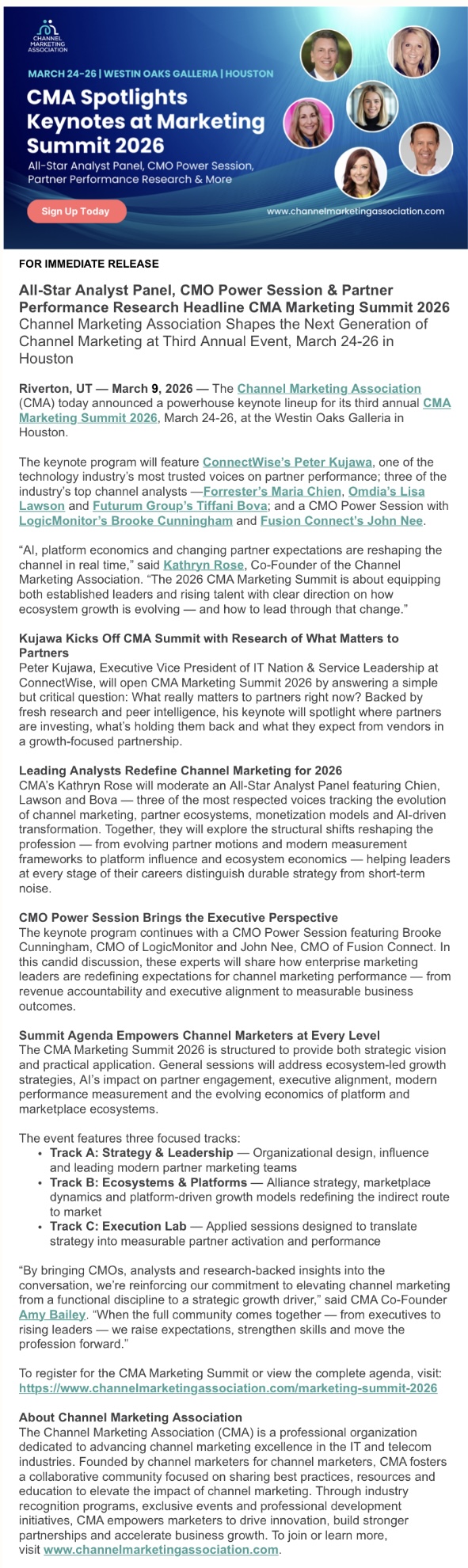 All-Star Analyst Panel, CMO Power Session & Partner Performance Research Headline CMA Marketing Summit 2026 Source iAgentNetwork on 03/13/26