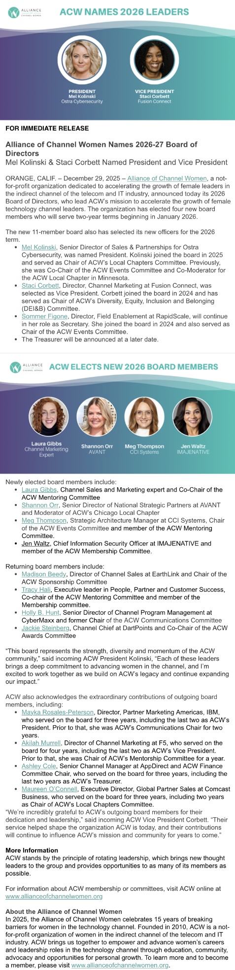 Alliance of Channel Women Names 2026-27 Board of Directors