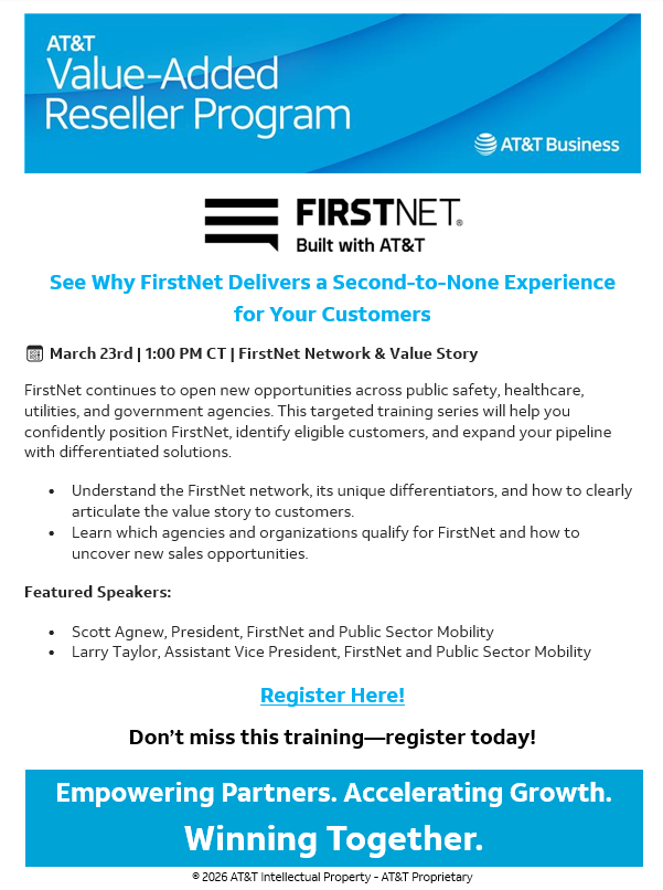AT&T Value-Added Reseller Program | External Training: FirstNet Network & Value Story Source iAgentNetwork on 03/18/26