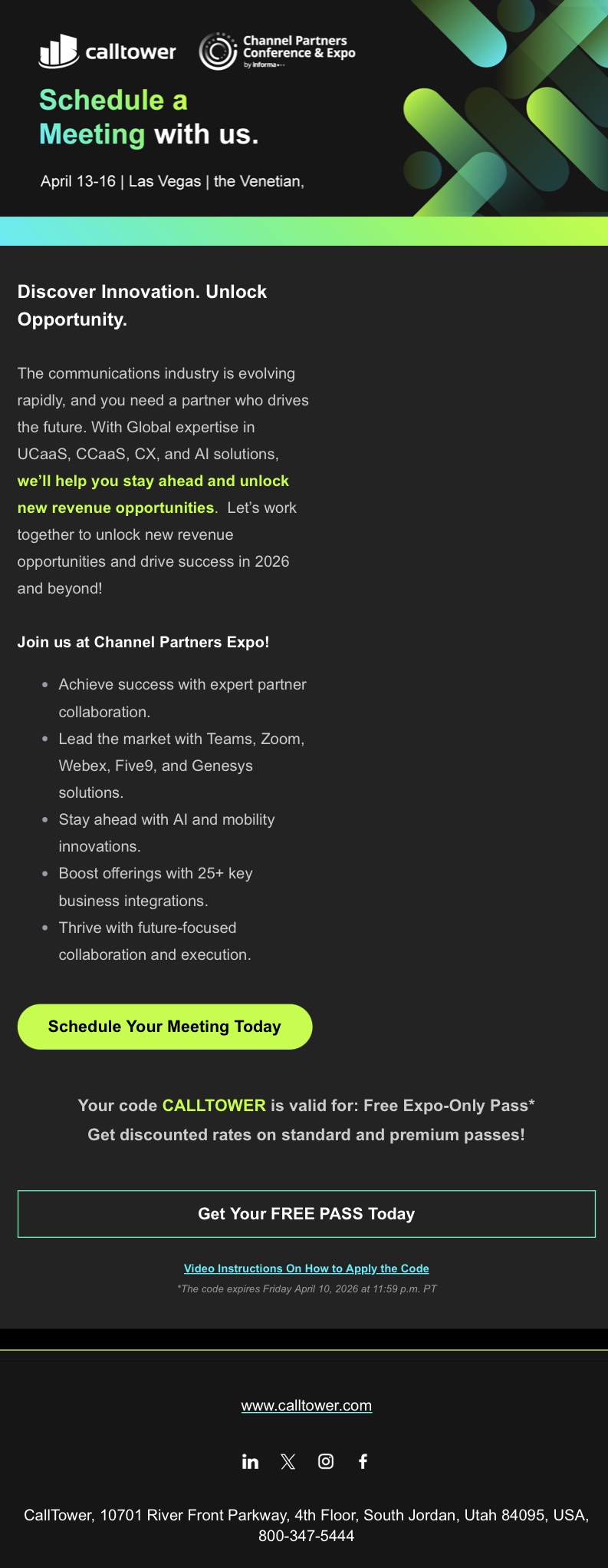 Attending Channel Partners Expo? Schedule a meeting with CallTower.