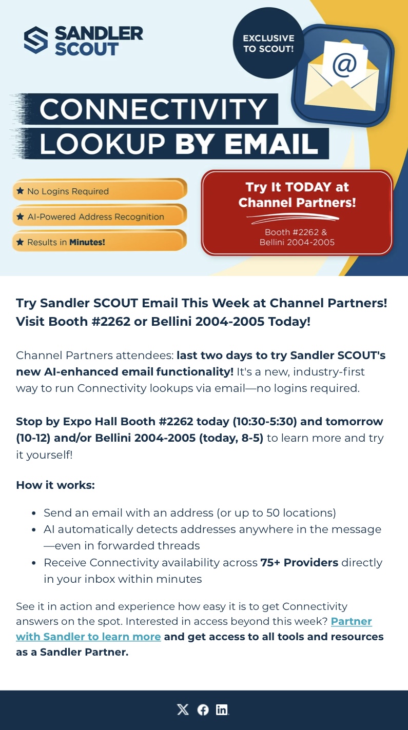 Connectivity Lookup by Email with Sandler SCOUT | Try It at Channel Partners! Source iAgentNetwork on 04/15/26