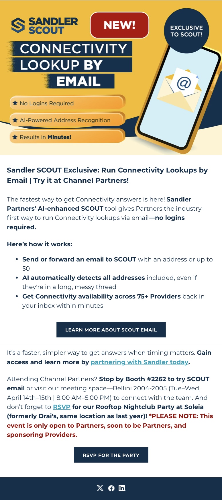 Connectivity Lookup via Email | Sandler Partners’ AI-Enhanced SCOUT Tool Source iAgentNetwork on 04/3/26