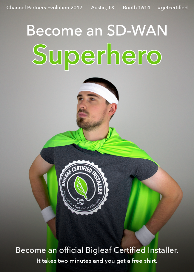 Swing by Booth 1614 at the Channel Partners Evolution trade show and we’ll show you how quick and easy it is to become a Bigleaf Certified Installer. You can also check out a Bigleaf SD-WAN live demo with our friends at Sierra Wireless in the San Jacinto Room at the Courtyard Inn Hotel, Tues and Wed from 9am to 5pm. #getcertified