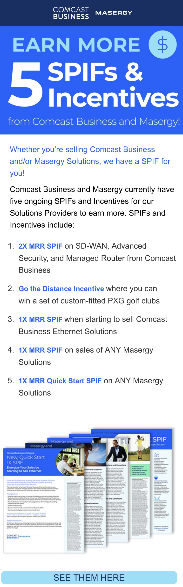 Earn More with SPIFs and Incentives from Comcast Business and Masergy! Source iAgentNetwork on 06/1/22