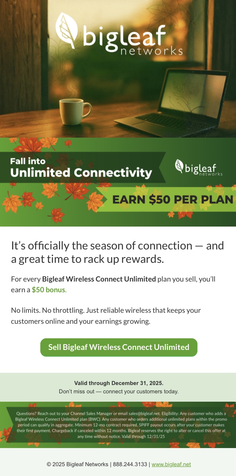 Fall into Unlimited Connectivity with Bigleaf — and Earn $50 per Plan Source iAgentNetwork on 10/14/25