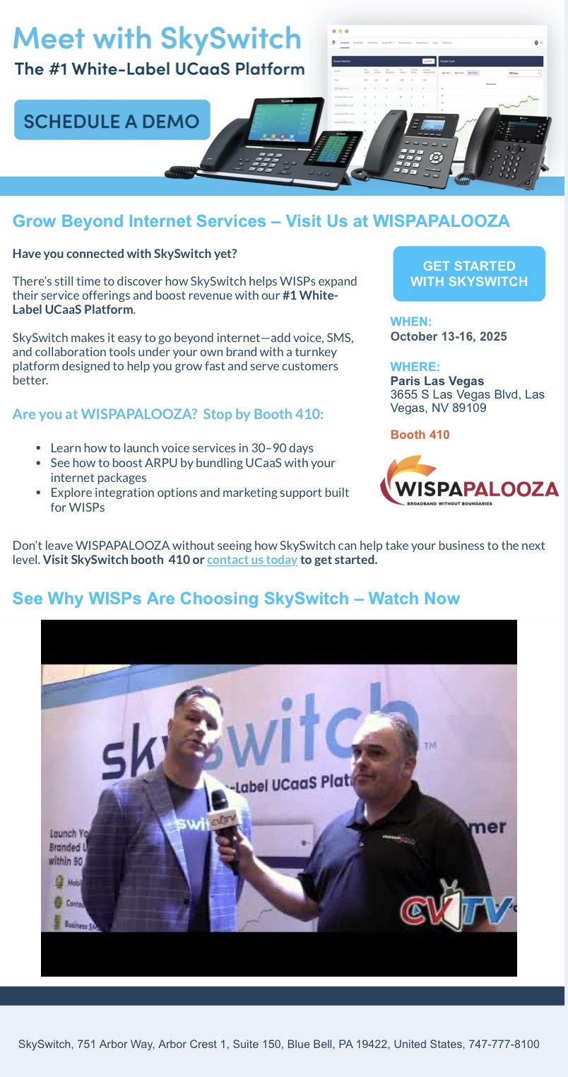 Grow Beyond Internet Services – Visit SkySwitch at WISPAPALOOZA