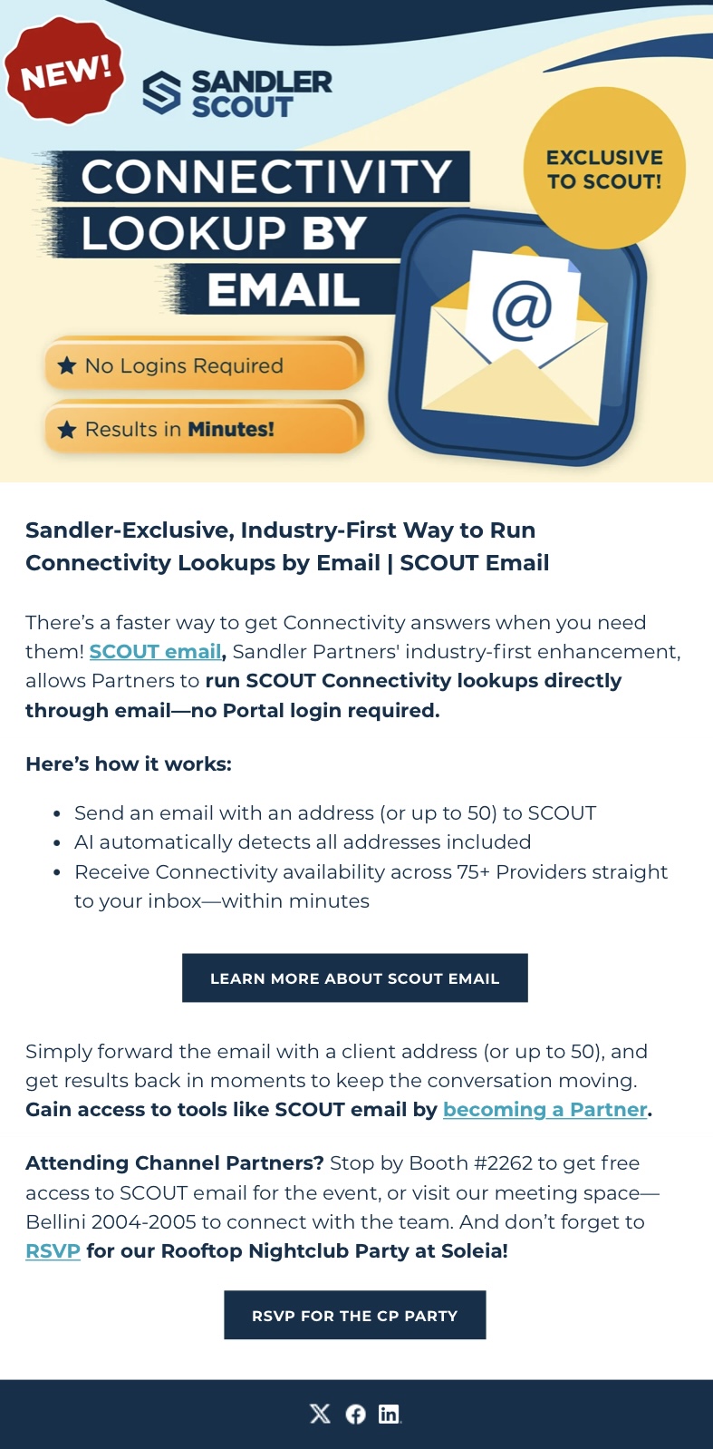 Industry-First Connectivity Lookup via Email | Only With Sandler SCOUT!