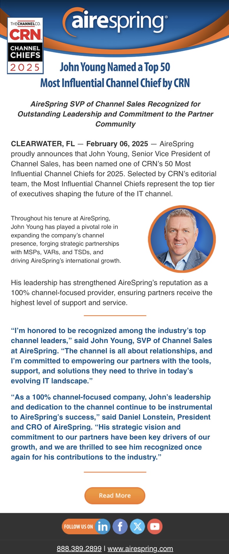 John Young Named a Top 50 Most Influential Channel Chief by CRN