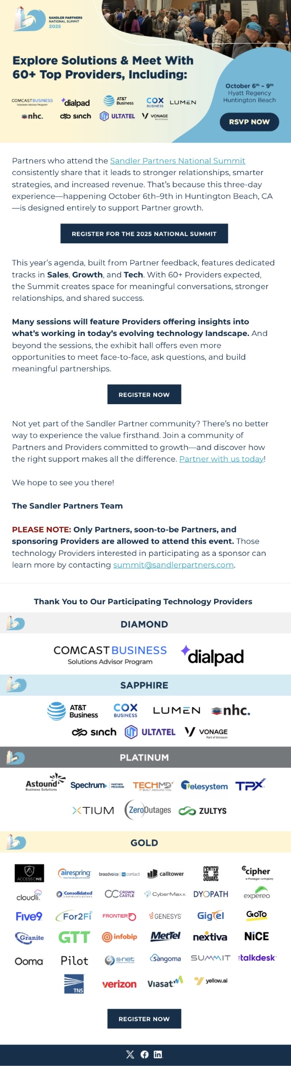 Learn From & Connect With 60+ Leading Providers to Better Serve Your Customers | RSVP for the Sandler National Summit