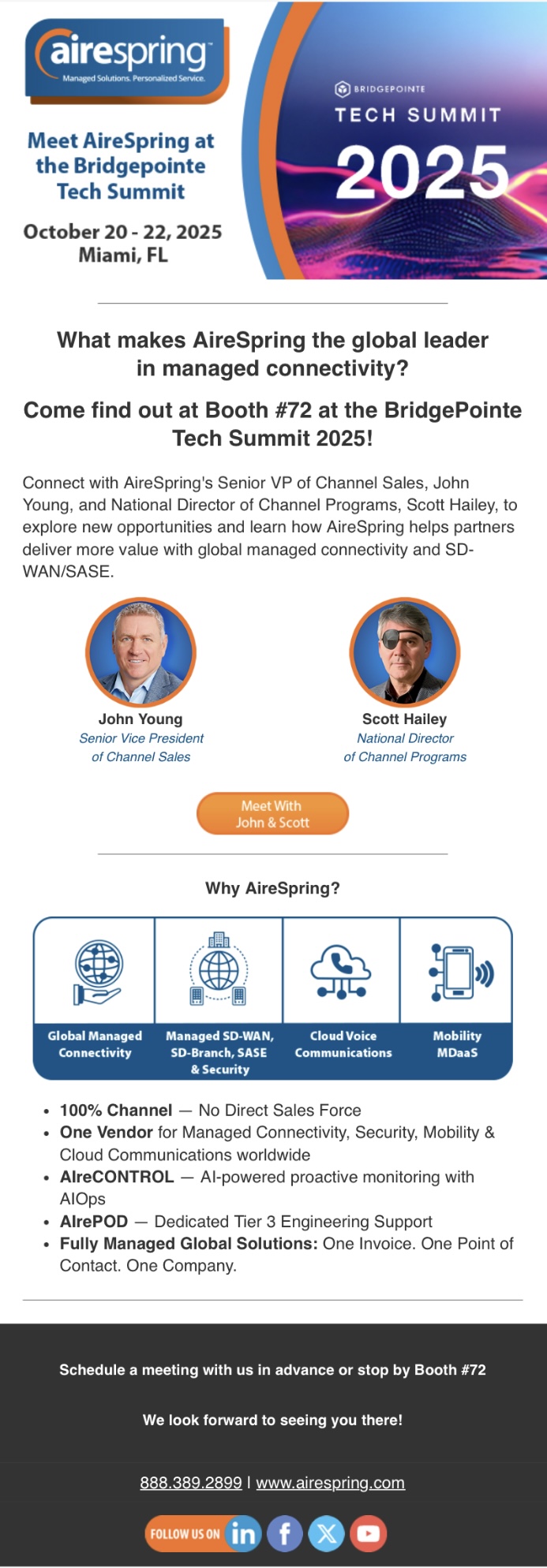 Meet AireSpring at the Bridgepointe Tech Summit 2025!