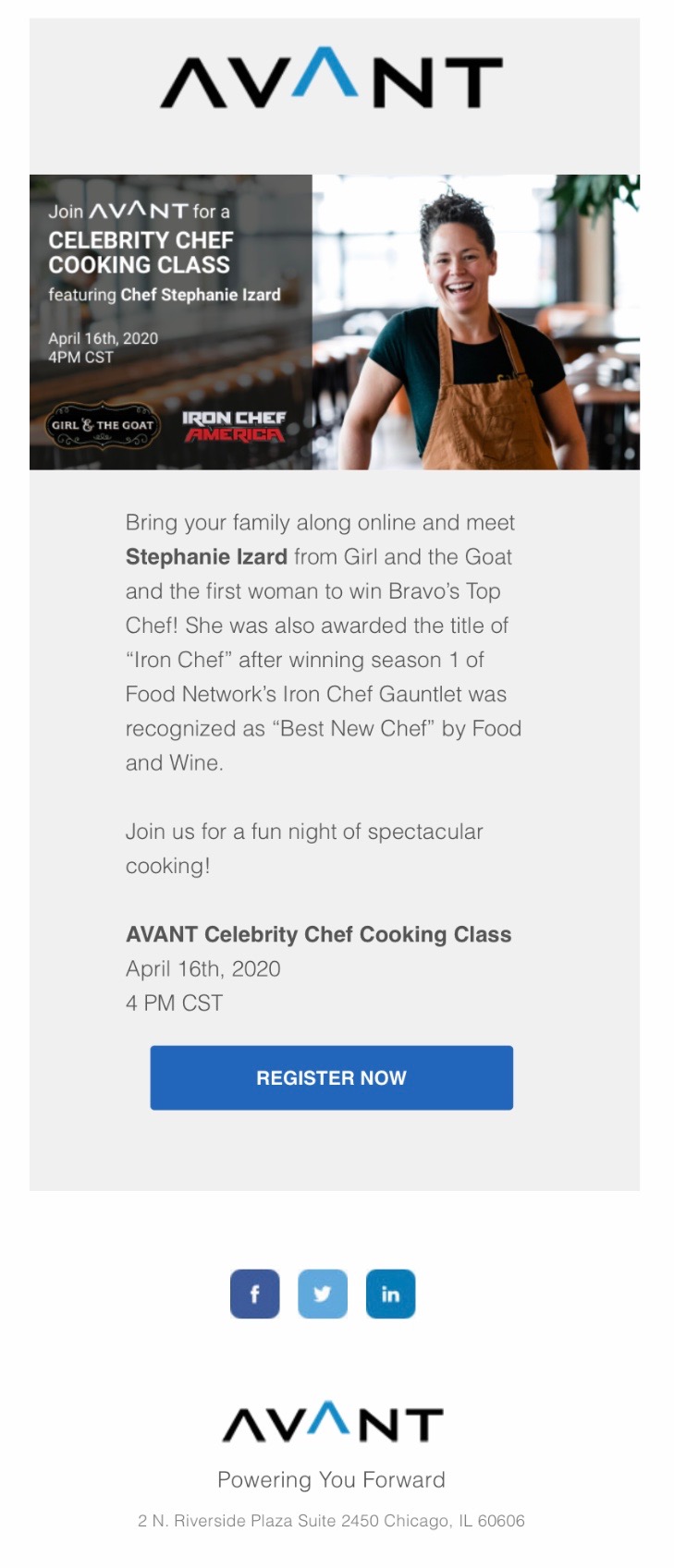 Register for AVANT’s Celebrity Chef Cooking Class!
