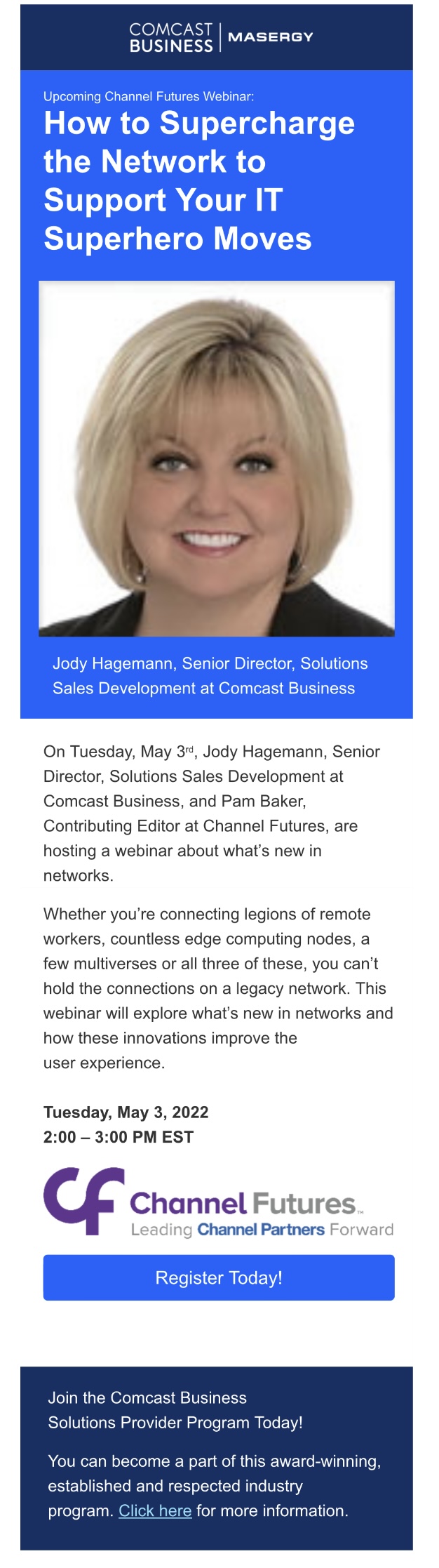 Register for the Upcoming Channel Futures | Comcast Business Webinar on What’s New in Networks Source iAgentNetwork on 04/29/22
