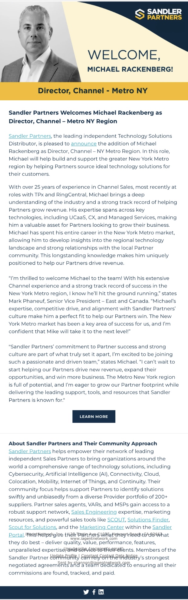 Sandler Partners Welcomes Michael Rackenberg as Director, Channel – Metro NY Region