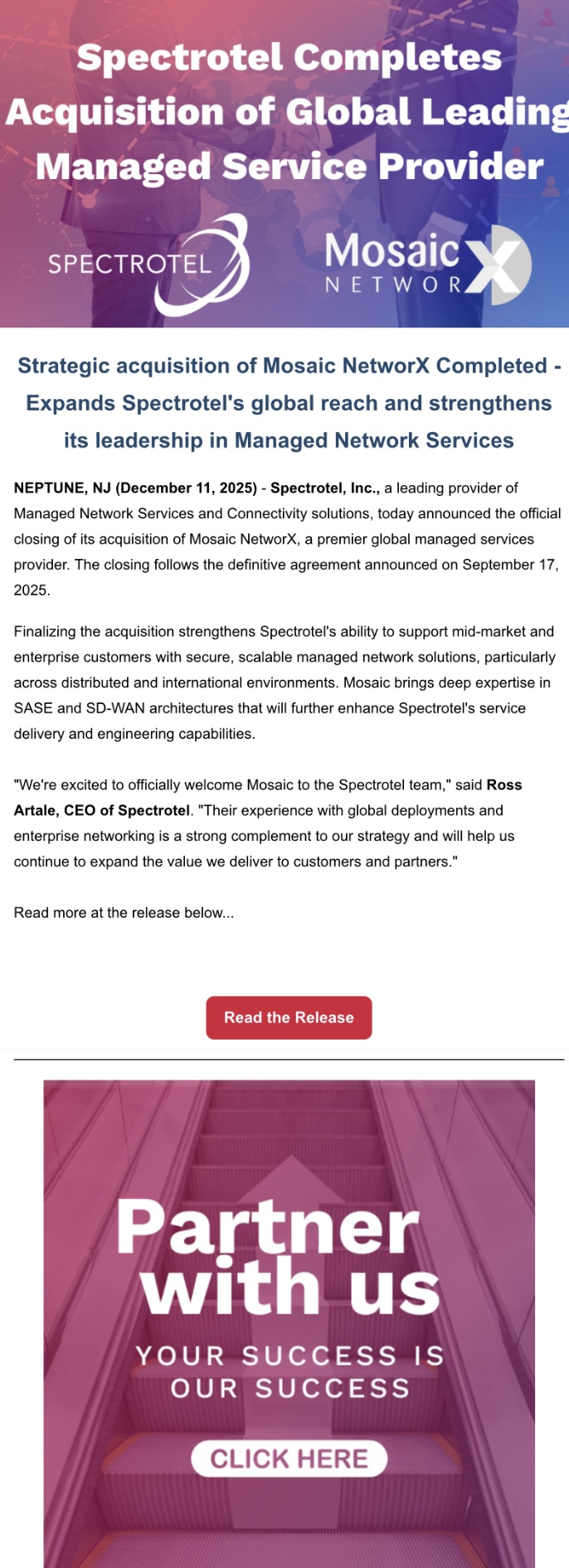 Spectrotel Completes Acquisition of Global leading MSP Mosaic NetworkX! Source iAgentNetwork on 12/11/25