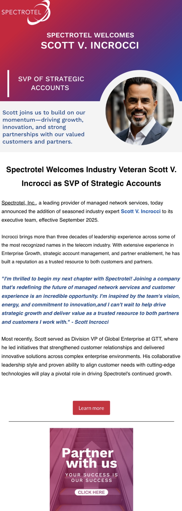 Spectrotel Welcomes Industry Veteran Scott V. Incrocci as SVP of Strategic Accounts! Source iAgentNetwork on 09/30/25