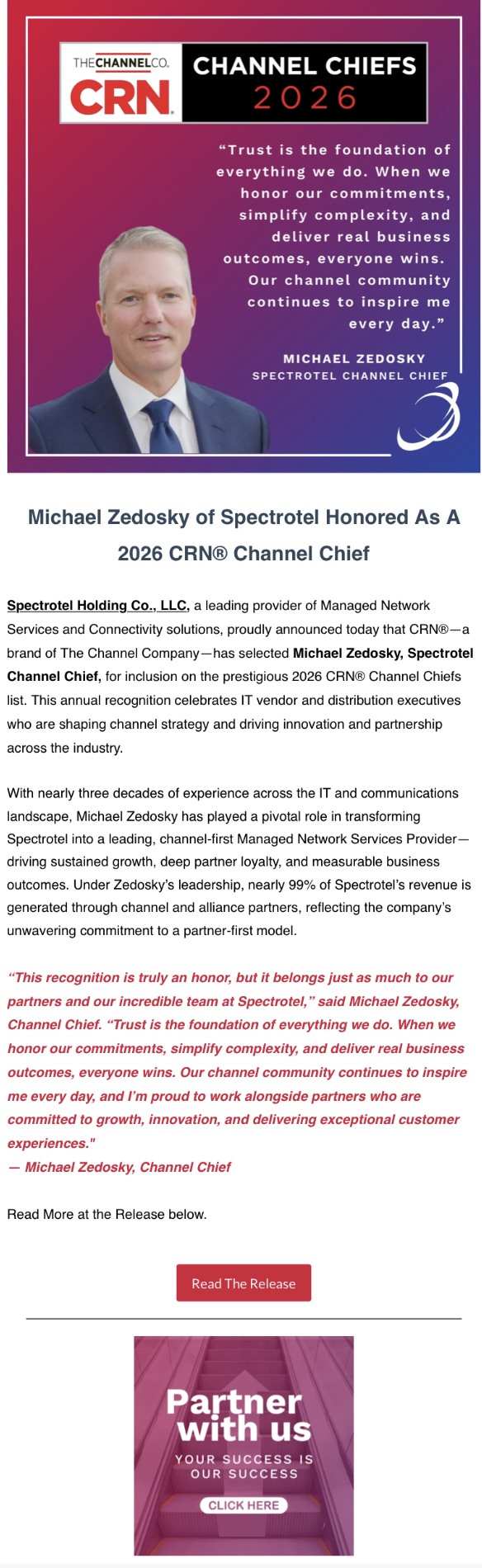 Spectrotel’s Michael Zedosky Receives 2026 CRN Channel Chief Award!