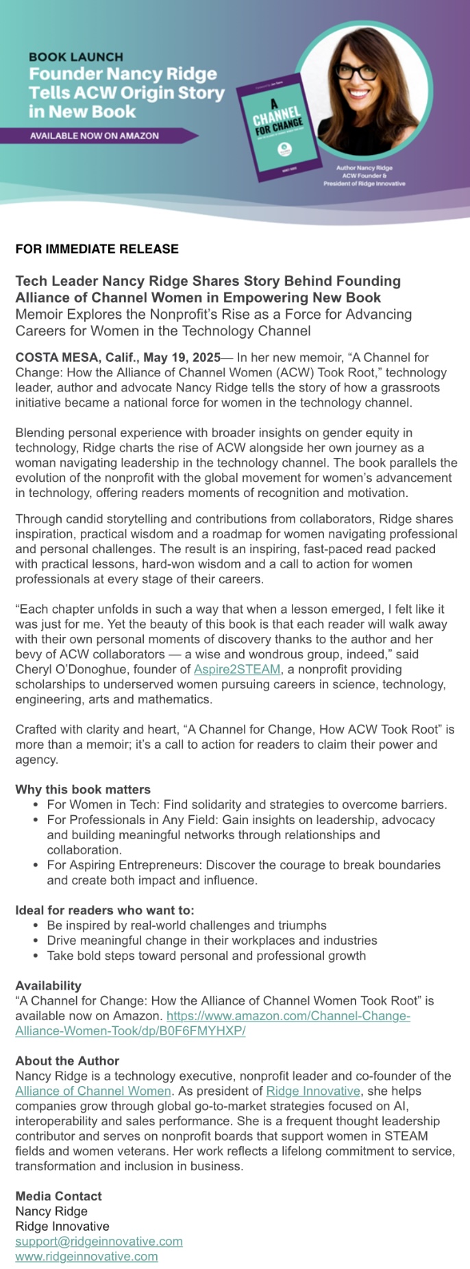 Tech Leader Nancy Ridge Shares Story Behind Founding Alliance of Channel Women in Empowering New Book Source iAgentNetwork on 05/19/25