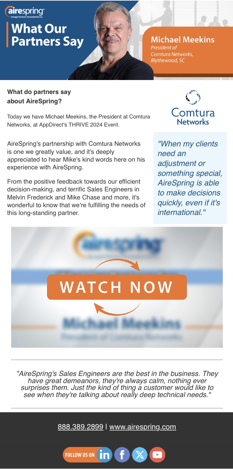 Watch This Video: What Do Partners Say About AireSpring? – Michael Meekins Source iAgentNetwork on 12/11/24