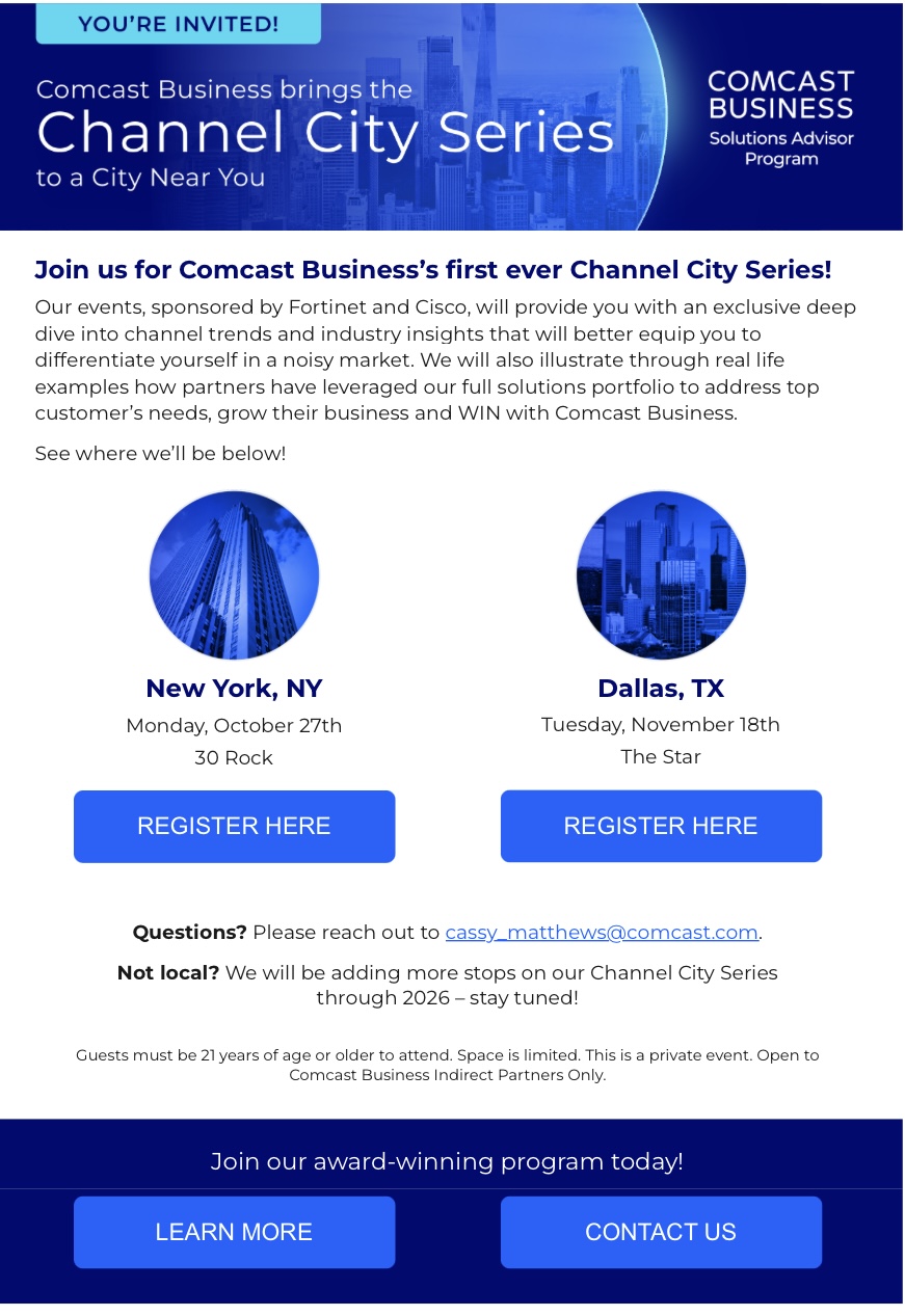 You’re Invited! Comcast Business Brings the Channel City Series to a City Near You Source iAgentNetwork on 10/16/25
